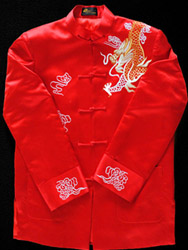 Men's black jacket with golden dragon and clouds embroidery Item Code: CCM40