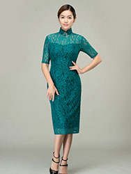 Description: traditional cheongsam, mandarin collar, flower buttons, double slits, cap sleeves,Under Knee length. It is very noblest.